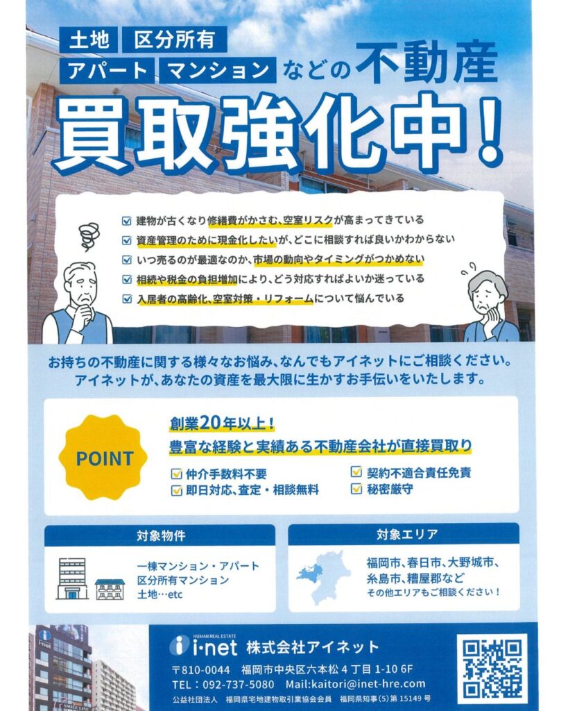 アイネットでは、土地・区分所有・アパート・マンションなどの買取を強化しております。
