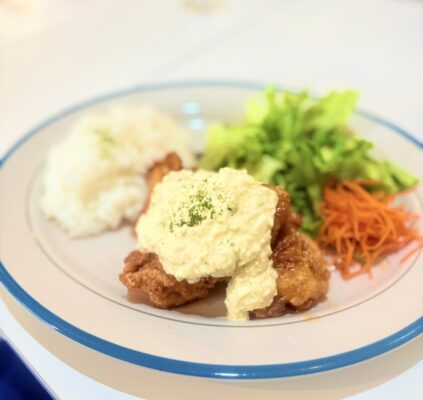 チキン南蛮(1,200円)、ホットのアメリカーノ(550円)、タコライス(1,150円)、ラズベリーソーダ(550円)を注文🌟🌟甘味のある衣のキチン南蛮は見かけ以上にボリュームがあり、タコライスはさっぱりした野菜との相性はばっちりろっぽ😆ほかにフードはビビンバやサイドでチキン、デザートにチーズケーキなどがあったろっぽ🍰🍴