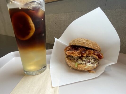 チキンカツサンドとレモネードコーヒーを注文🥯